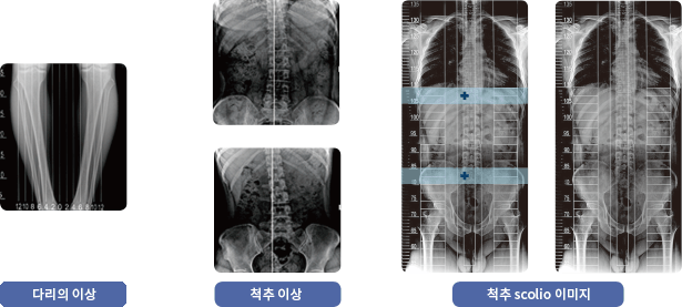 SCOLIO를 이용한 다리의 휨 정도를 구분할 수 있습니다. 수술전후 Lead Line이 새겨진 방사선영상은 정밀한 진단을 유도합니다.